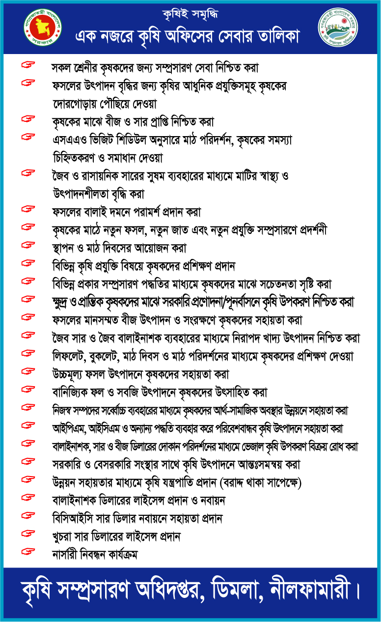 কৃষি বিষয়ক পরামর্শ প্রদান।